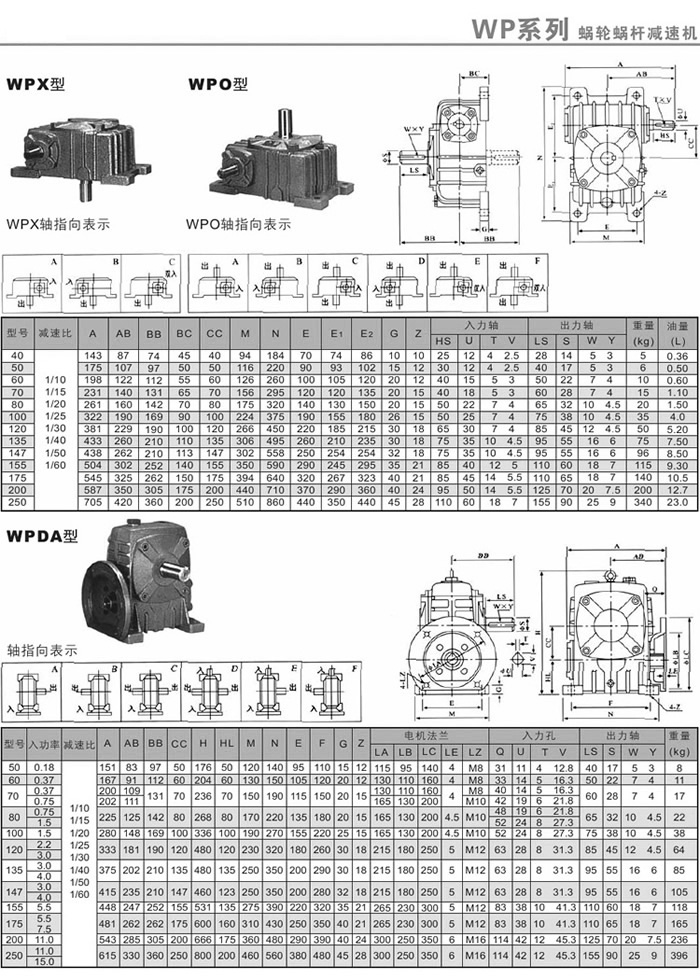 分享幾款減速機尺寸,WPA、WPS、WPX、WPO、WPDA